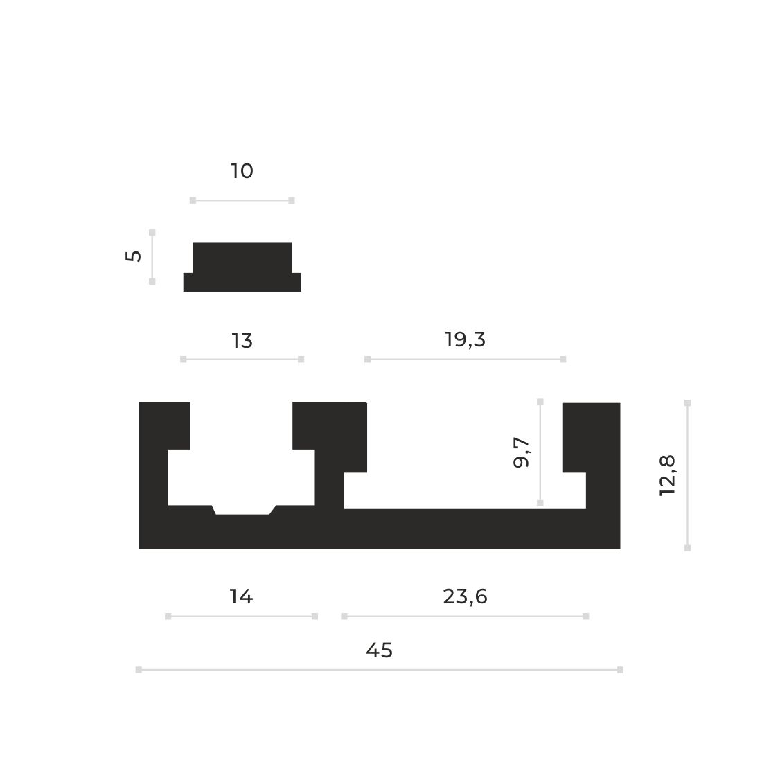 Сдвоенный профиль с пазом 19,3мм + паз в котором установлен ползунок с линейкой 100 см.