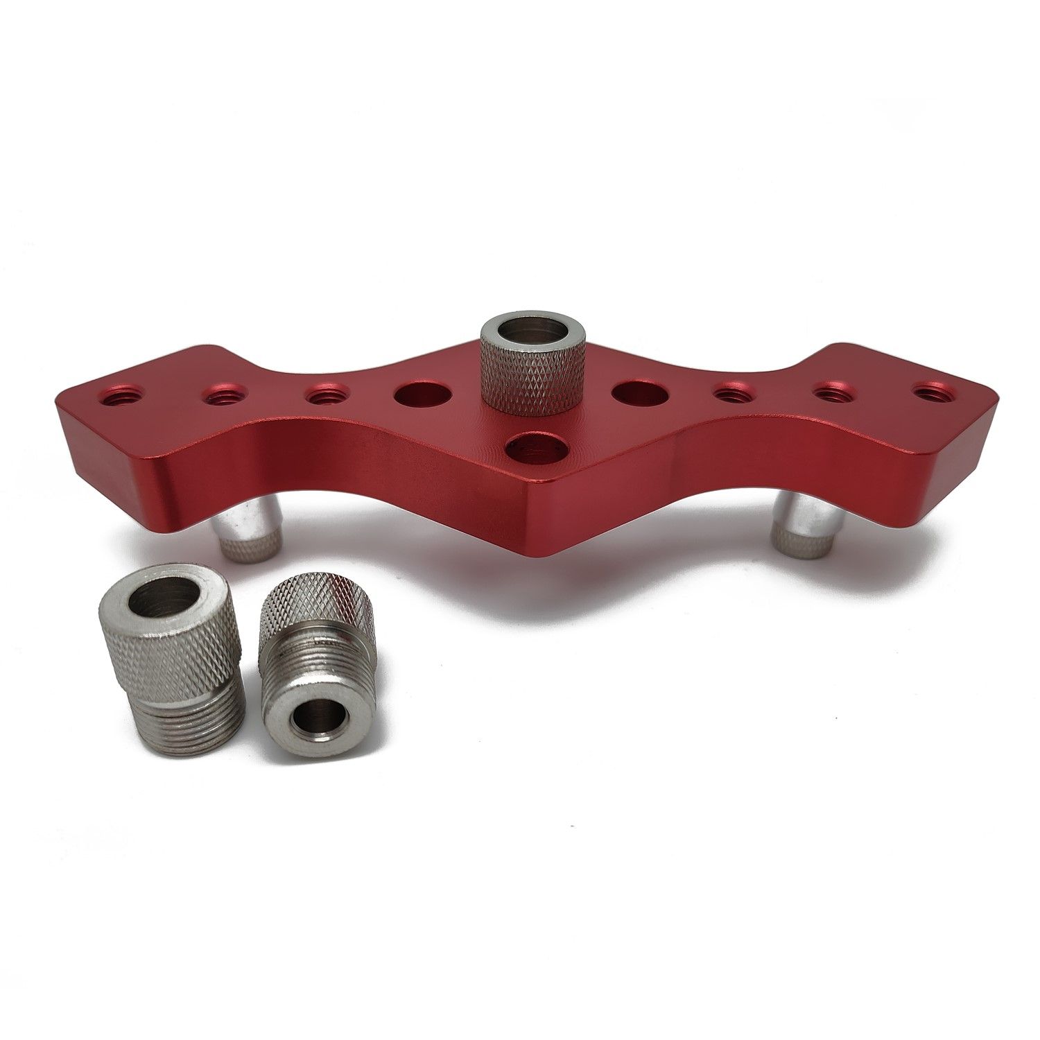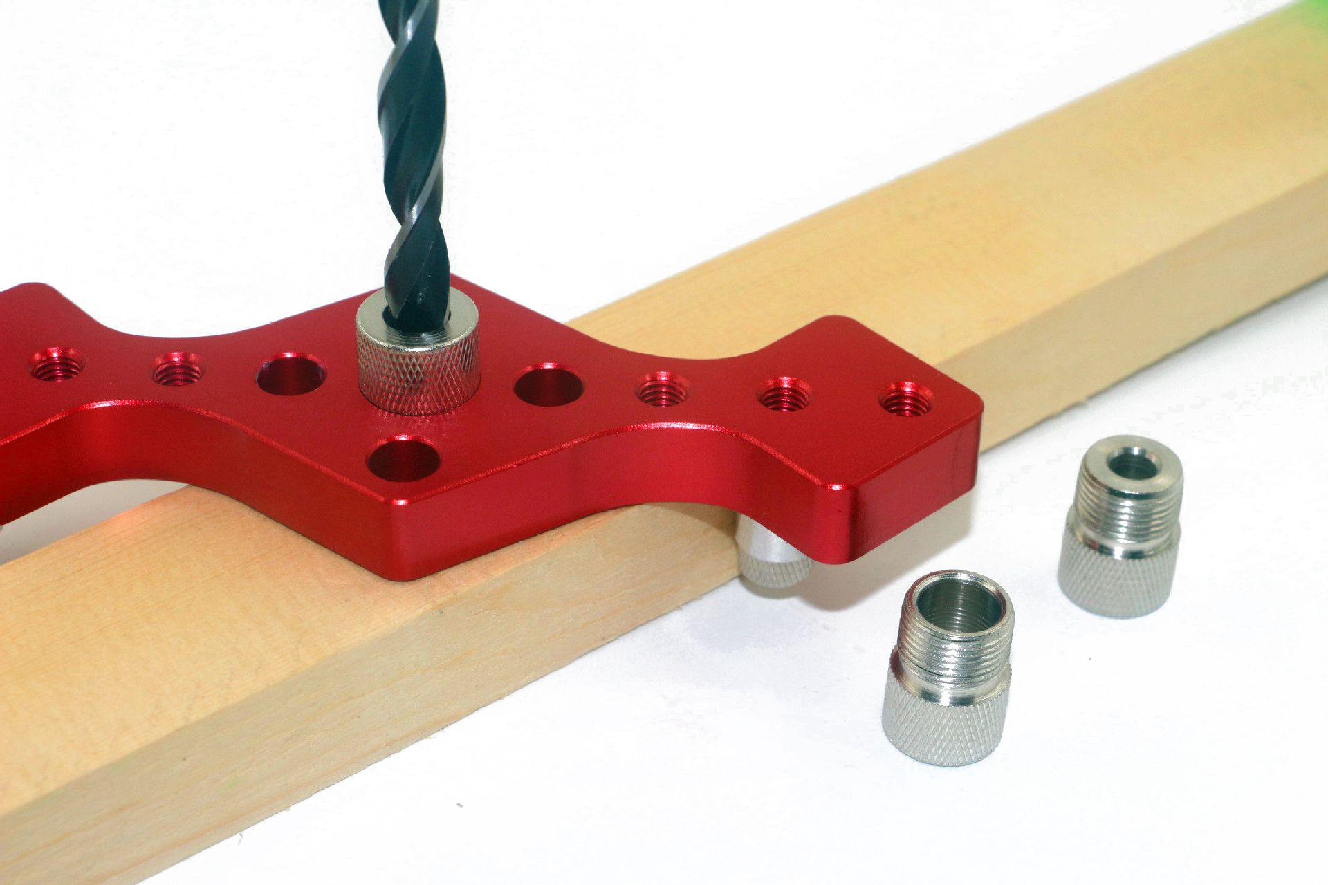 За счет нахождения упоров и отверстия под втулку на одной линии, шаблон центрирует втулку по центру выставленной детали.