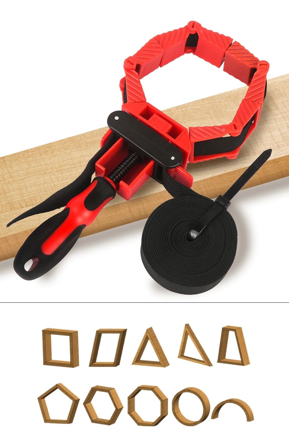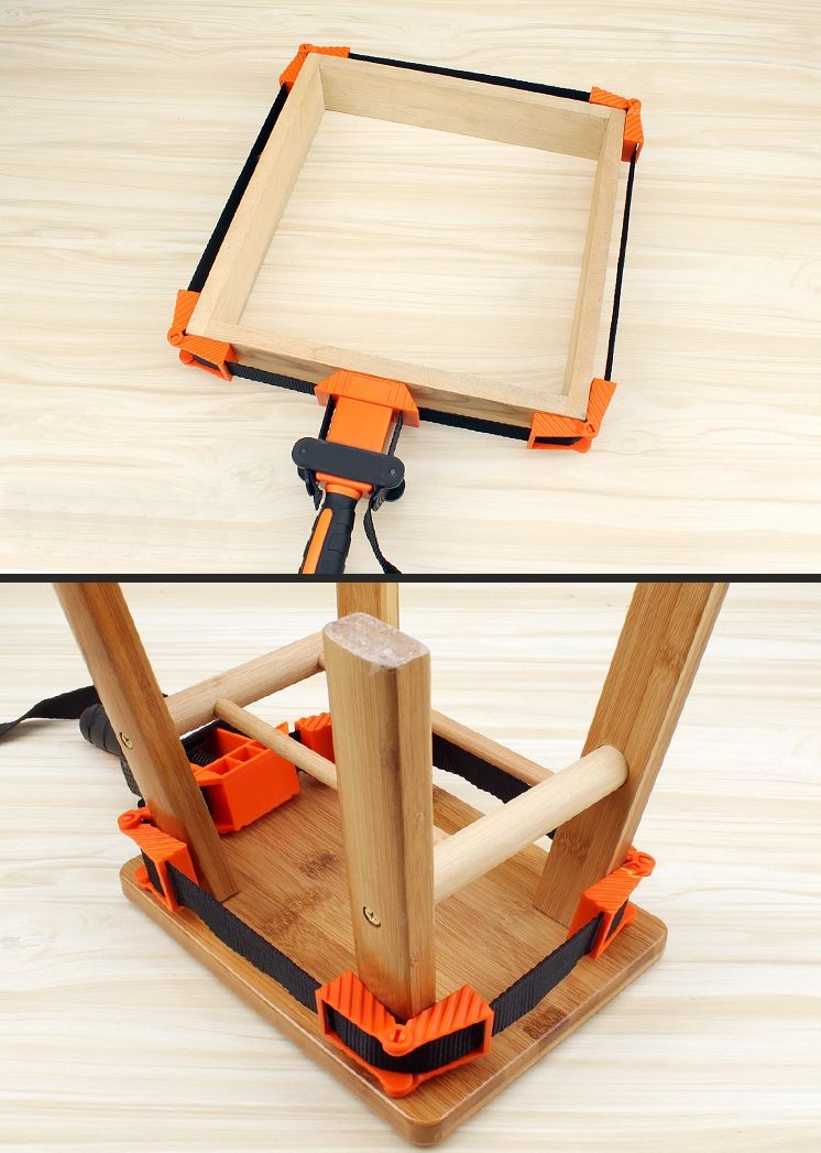 Ременная струбцина отлично подходит для столярных работ во время склейки и сборки изделия.