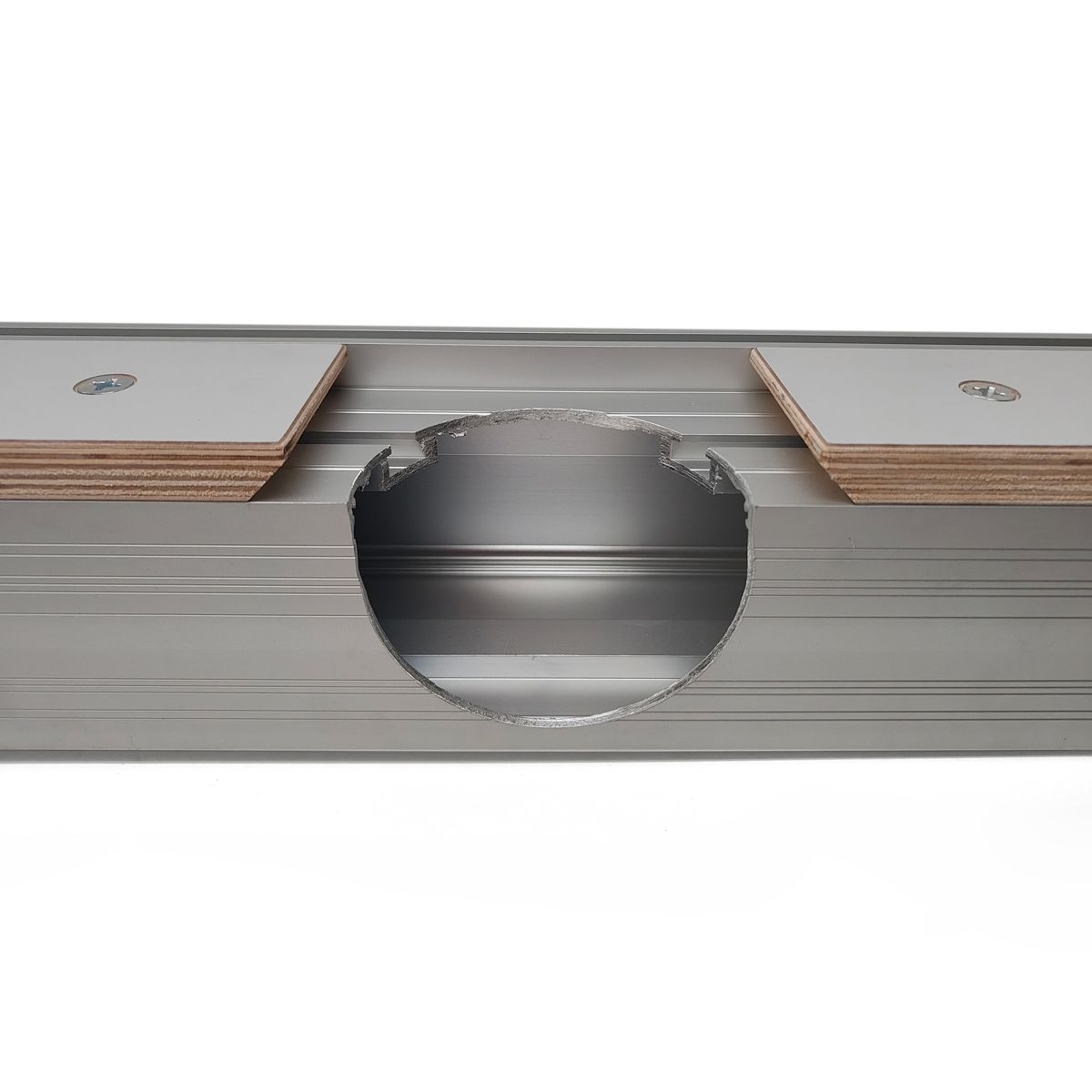 Отверстие полукруглой формы позволяет оставить максимальное кол-во материала, а значит и сохранит жесткость по сравнению с прямоугольными отверстиями. При этом, не мешая фрезам большого диаметра из-за своей формы.