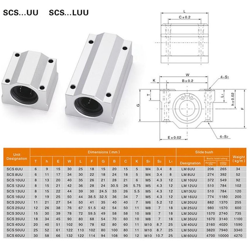 Линейные подшипники серии SCS используются с полированными валами серии SFC.