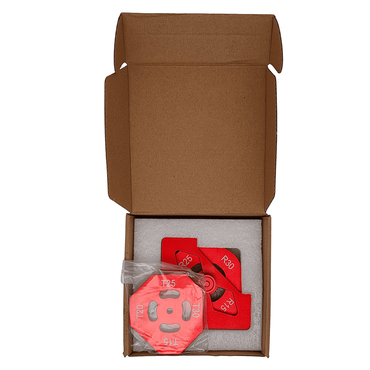 С помощью винта, установленного в базе, происходит быстрая замена вставок на нужны радиус.