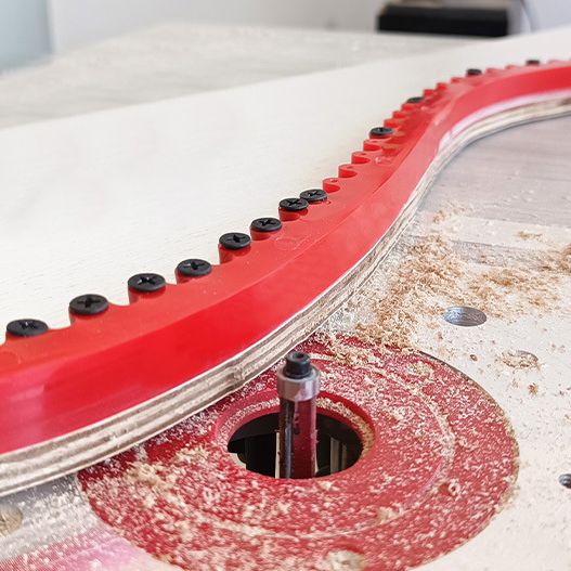 Используется при работе с обводной фрезой. Данным шаблоном создаются произвольные дуги на заготовке, которые служат в качестве упора для обводной фрезы.