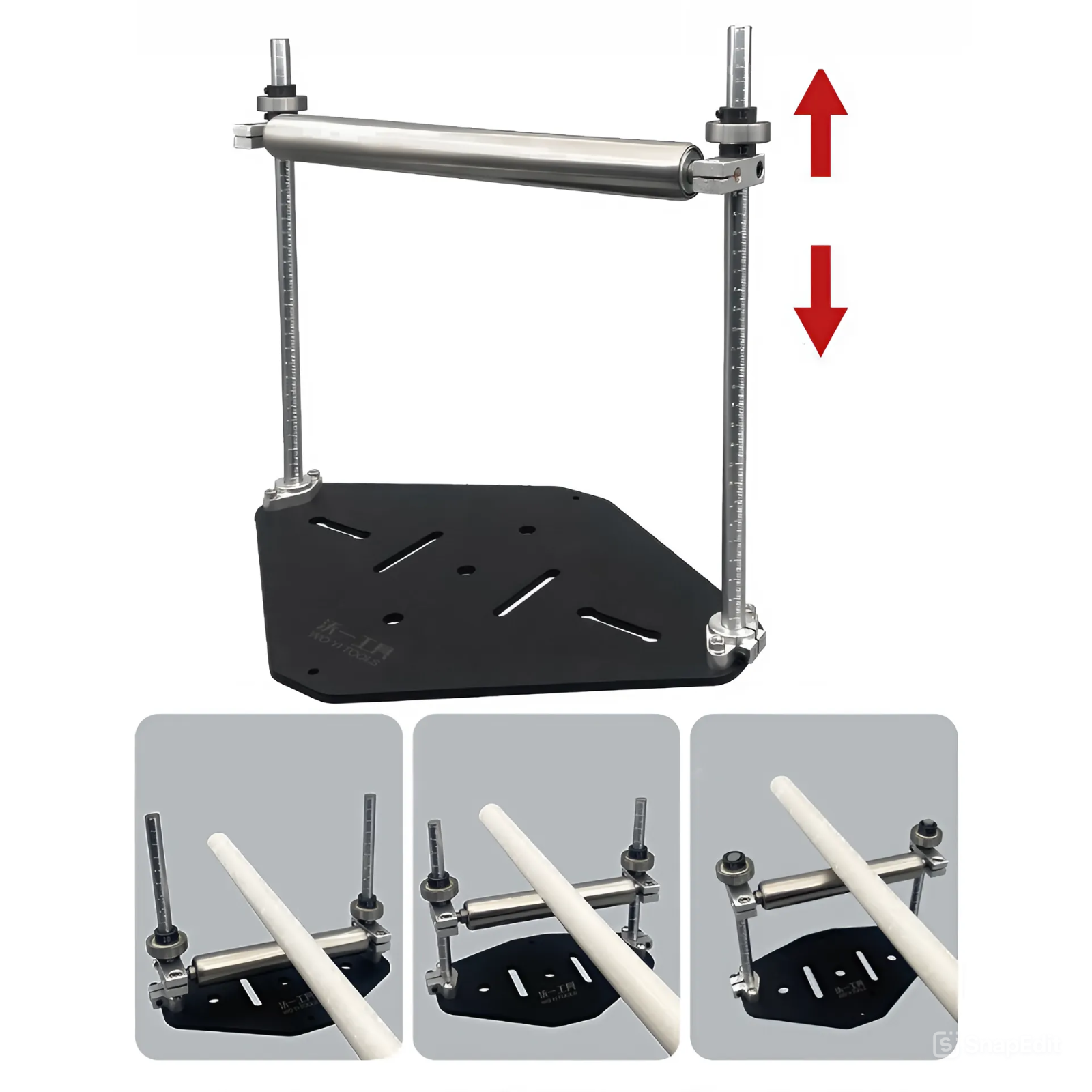 Также чтобы материал лучше перемещался по подставке, сбоку на стойках горизонтально установлены подшипники.