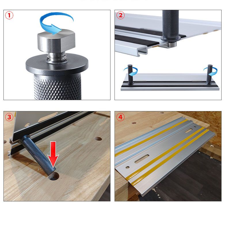 Фиксаторы предназначены для быстрого и надежного крепления направляющих шин в монтажном столе (MFT-столе). Позволяют легко устанавливать направляющие под разными углами относительно отверстий столешницы и заготовок.