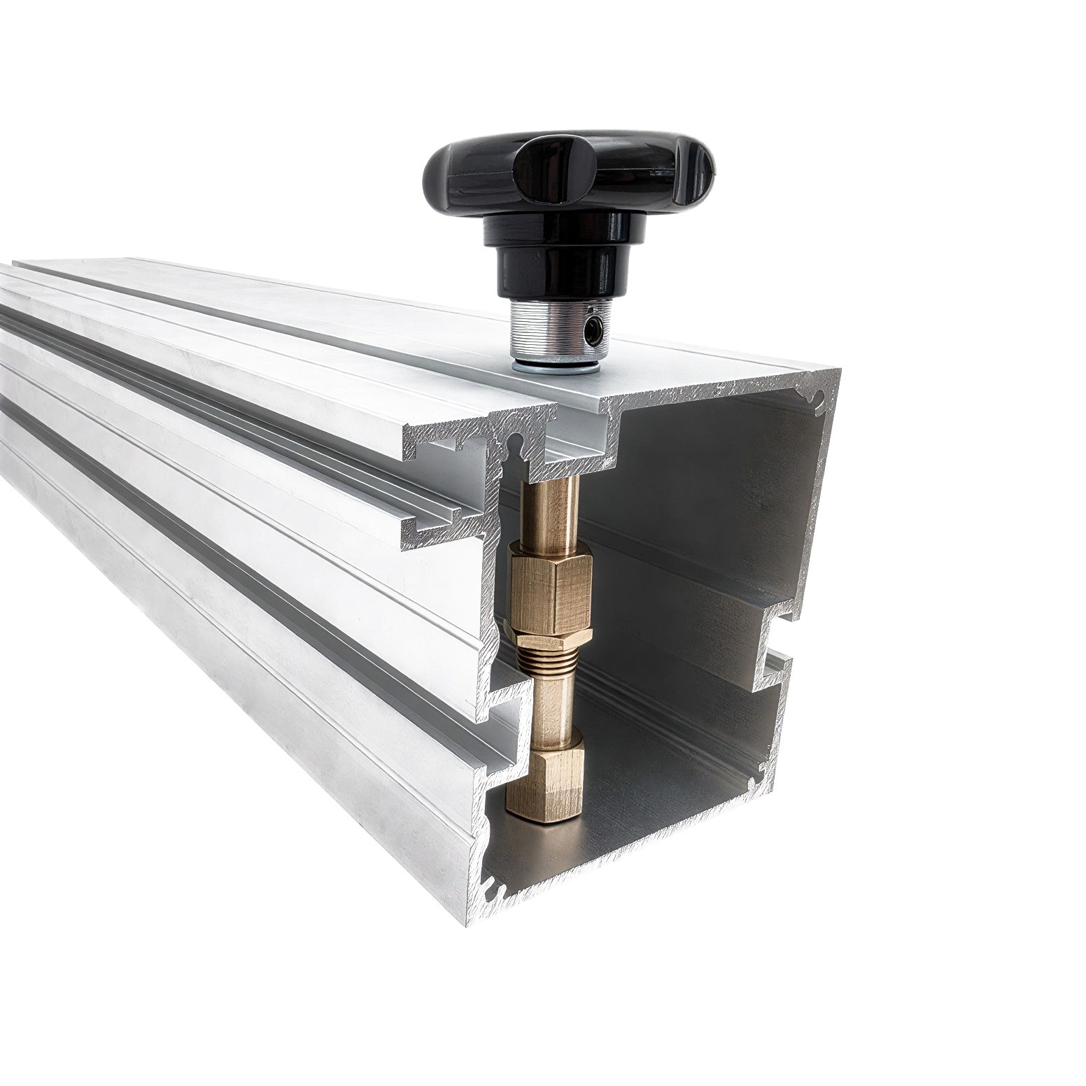 3. После засверловки вставьте втулки внутрь профиля и надёжно зафиксируйте их гайками.